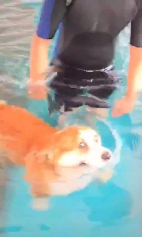 柯基游泳,温馨感人